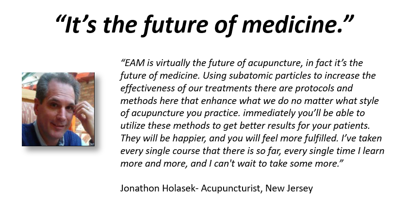 I personally experienced EAM as a demo during the seminar, and it was the most powerful treatment of any approach I have received to date. The minimal investment is pennies compared to what it will yield in practice. The platform casts a language that bridges the gap for energy medicine to emerge as a primary option into the modern healthcare era. Patients understand it. Other medical professionals are open to it. Everyone gets it.”